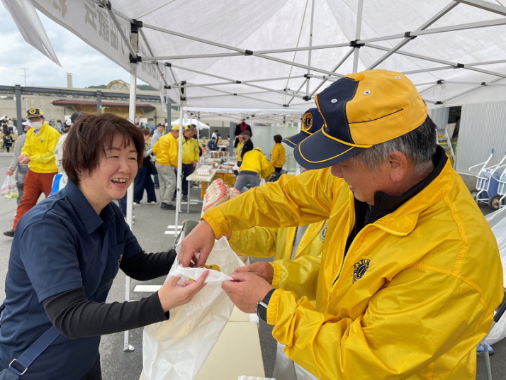 行いました。記念品はパン、ドリンク、マスク、消毒ウエットタオルを町と当クラブで準備、