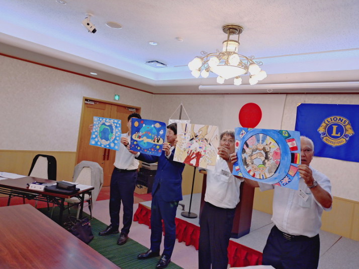第1240回例会にて、千代田地域の小学校児童を対象にした国際平和ポスターコンテスト選考結果の