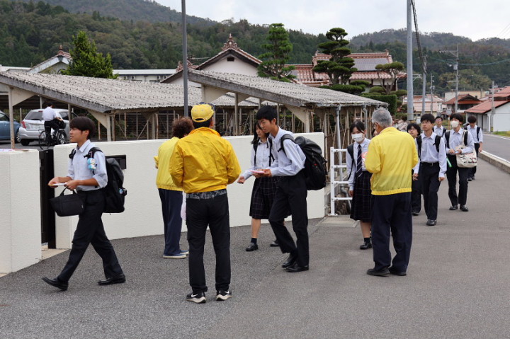 午前7時30分から8時30分迄、北広島町千代田地区の千代田中学校と千代田高校にて