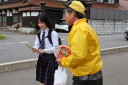 チラシ配布を、おはよう挨拶運動と併せて行いました。